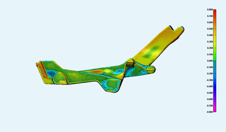 弊社では非接触型三次元測定機を導入しています。3Dデータと製品寸法との比較や、型・治具の摩耗経過観察など、寸法を可視化させることができます。