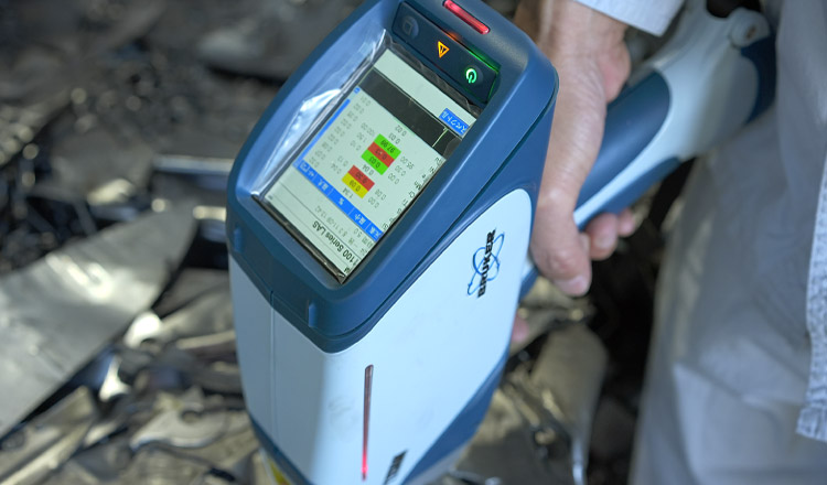 スクラップ材の構成元素の把握と、溶湯成分を分析します。測定場所や対象物の形状・大きさを選ばず短時間で分析を行うことができます。