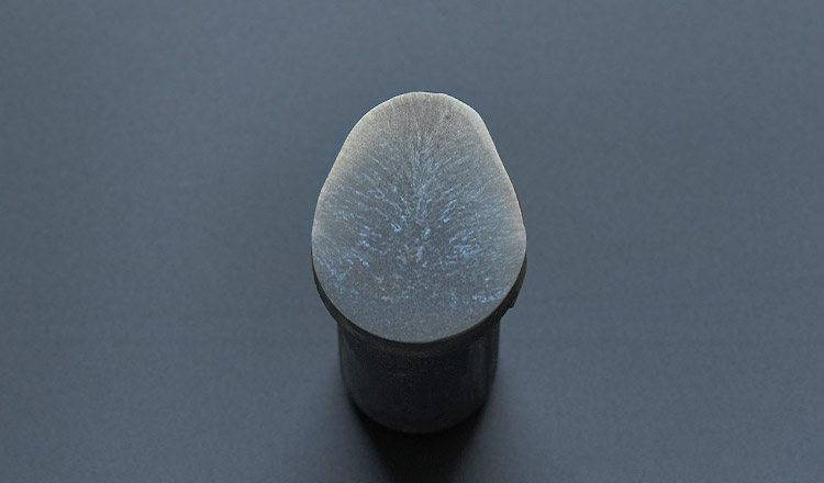 チルカムとは、片状黒鉛鋳鉄(FC)を材質として、鋳造時にカムノーズ部分にチラーを用いて急速凝固させることで、カムノーズ部の硬度を高くしたシャフトカムです。硬くしたいところは硬くしつつ、切削性も求められる要求品質の高い製品ですが、厳しい成分管理、溶湯の温度管理、冷却時間管理、万全な品質保証体制・高い現場力により安定した製品を供給しています。