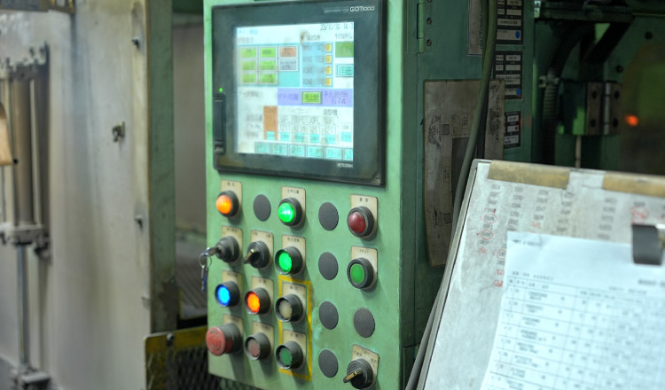 注湯後の加圧位置および溶湯量を専用カメラにて撮影し、生産装置の制御を行っています。